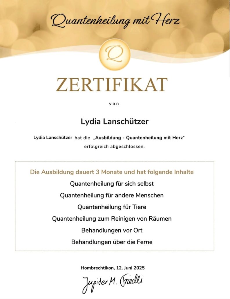 Als erfahrene Human- und Tierenergetikerin widme ich mich dem ganzheitlichen Wohlbefinden von Mensch und Tier. Hier findest du eine Übersicht meiner zahlreichen Zertifikate und Ausbildungen, die mein Wissen und meine Fähigkeiten in diesem besonderen Bereich untermauern. Tauche ein in meine Welt der energetischen Reise und erfahre, wie ich dir und deinen tierischen Begleitern zu einem harmonischen und zufriedenen Leben verhelfen kann.